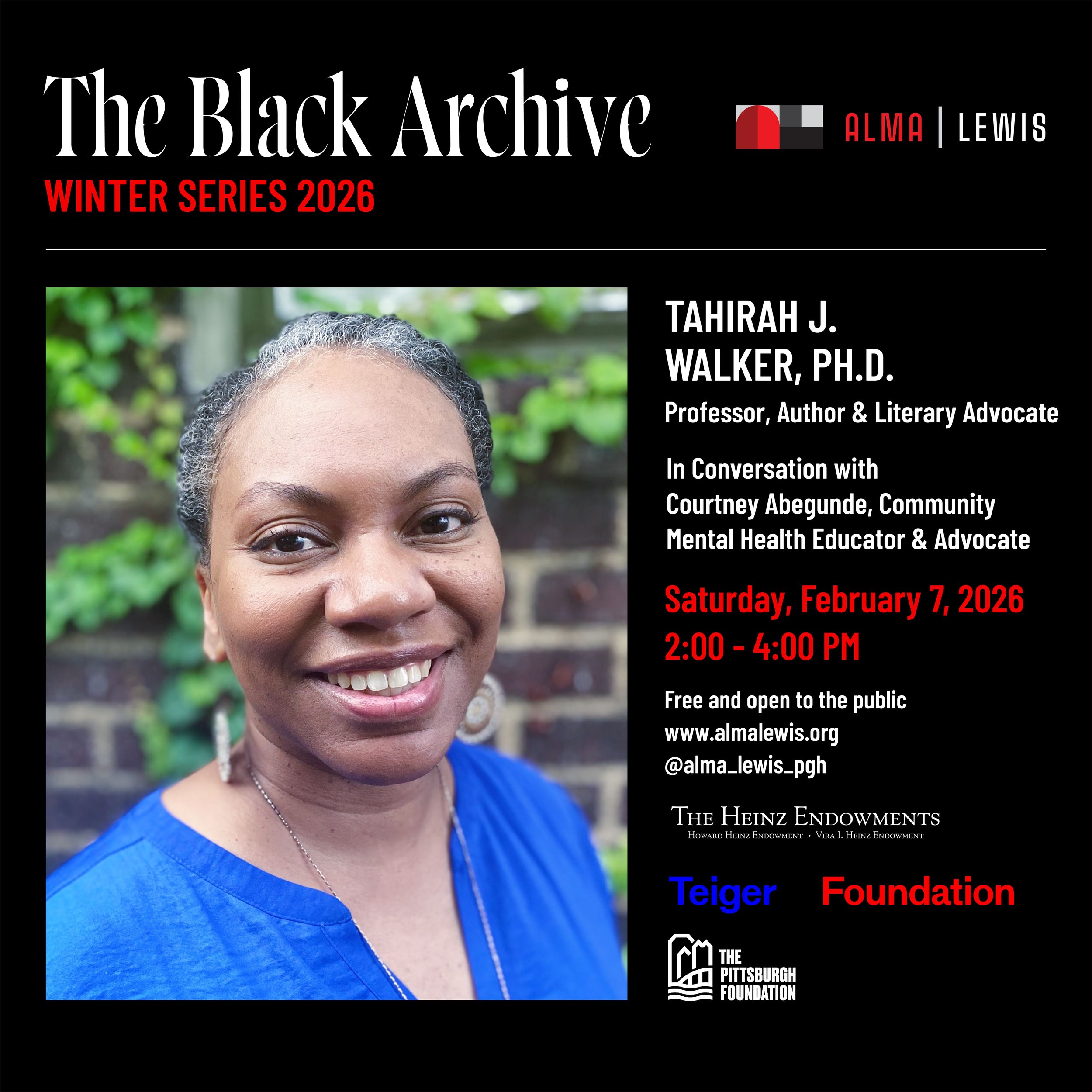 ALMA | LEWIS (A | L) introduces The Black Archive Series Winter 2026, a speaker series centering artists, writers, and scholars whose work engages Black culture, memory, and creativity. The inaugural series will feature cultural worker, poet, and author Lissette Norman; professor, author, and literary advocate Tahirah J. Walker, Ph.D.; and multidisciplinary artist and filmmaker Shikeith. Their conversations will be guided by creative, writer, and educator Kleaver Cruz; community mental health educator and advocate Courtney Abegunde; and artist Pierre London Williams.
